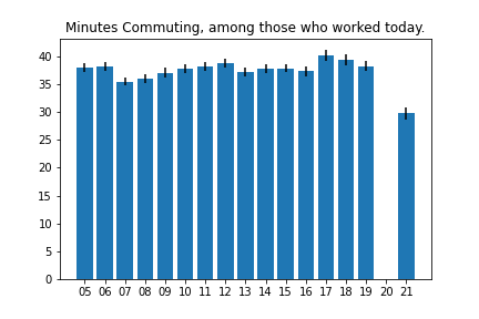 Some attempts to extract summary statistics about commuting and working from home from the American Time Use Survey.