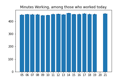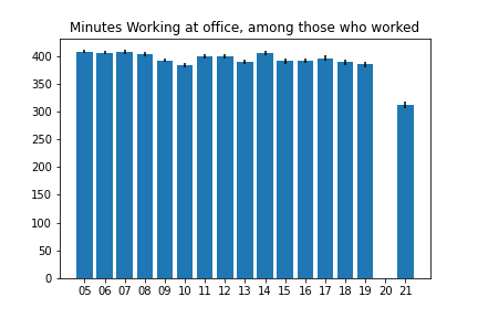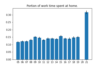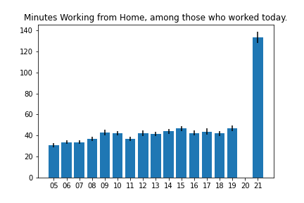 Below are some graphs made using data from the American Time Use Survey. Post pandemic, a lot of people shifted to working from home, and I wanted to see the magnitude of that change.